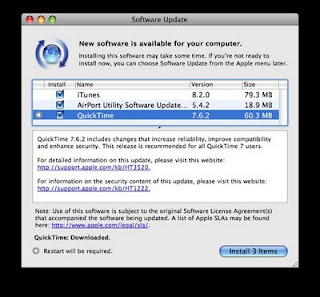 New Software update is available today. This one contains only one patch for Safari 4.0.1. Reboot is required.